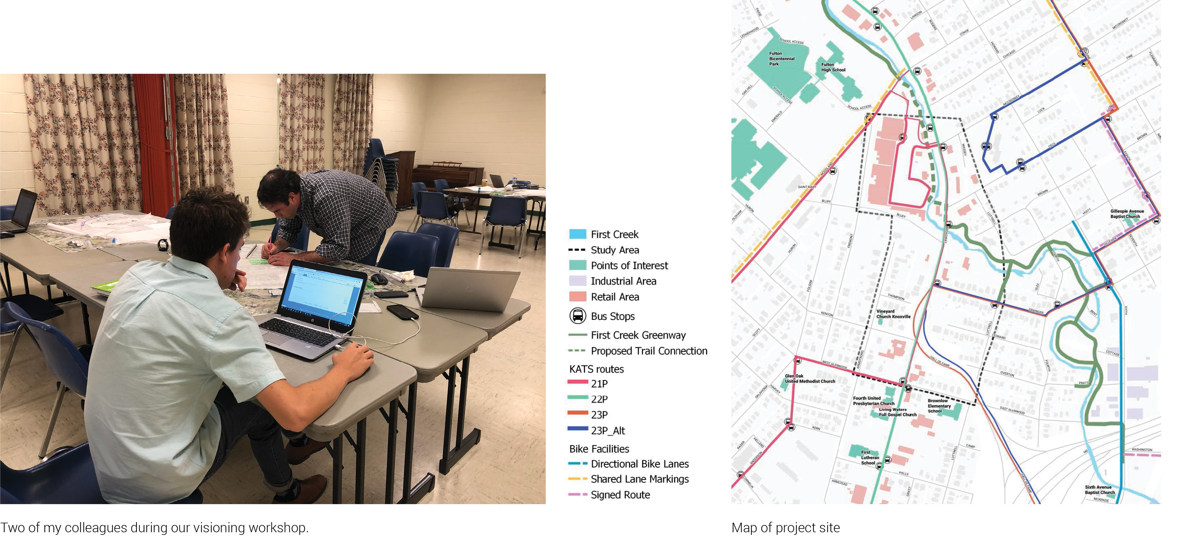 I learned so much from this project about how to engage with communities and create designs based on feedback from users. Everything we designed was driven by what we learned walking the site and talking to residents of Knoxville.